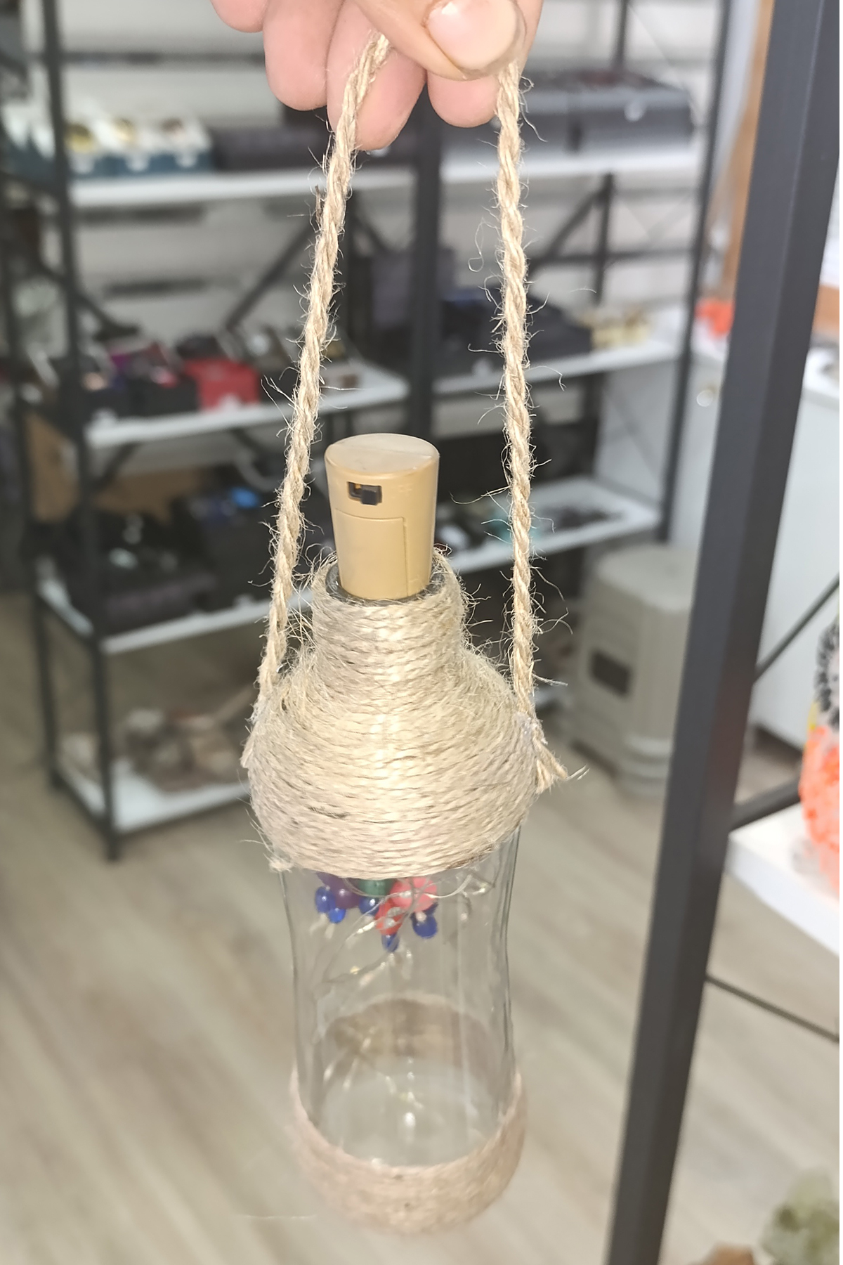 Cam Şise Üzerine Hasır Kaplı Led Lamba