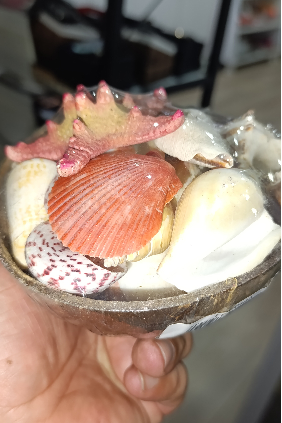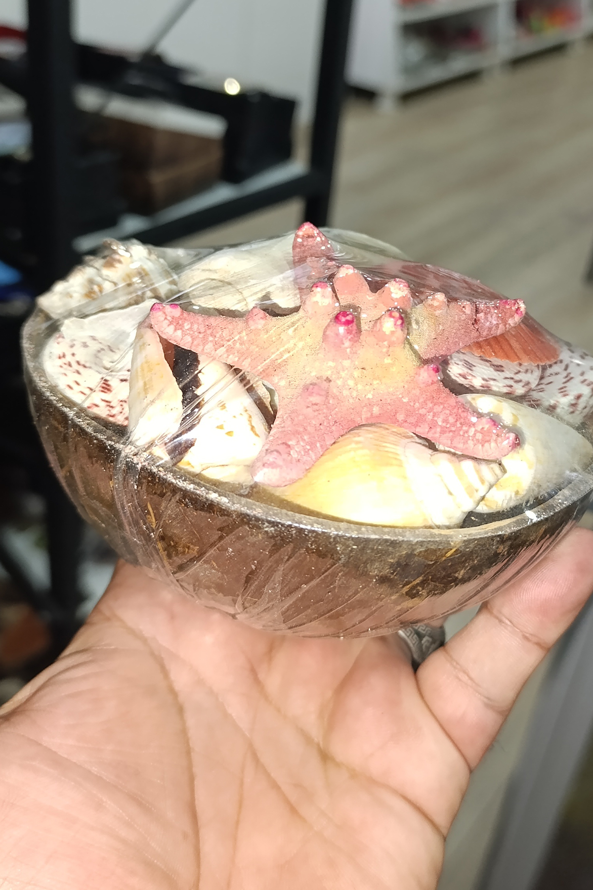 İçinde Farklı Türlerde Deniz Kabukları ve deniz Yıldızı Mevcuttur.
