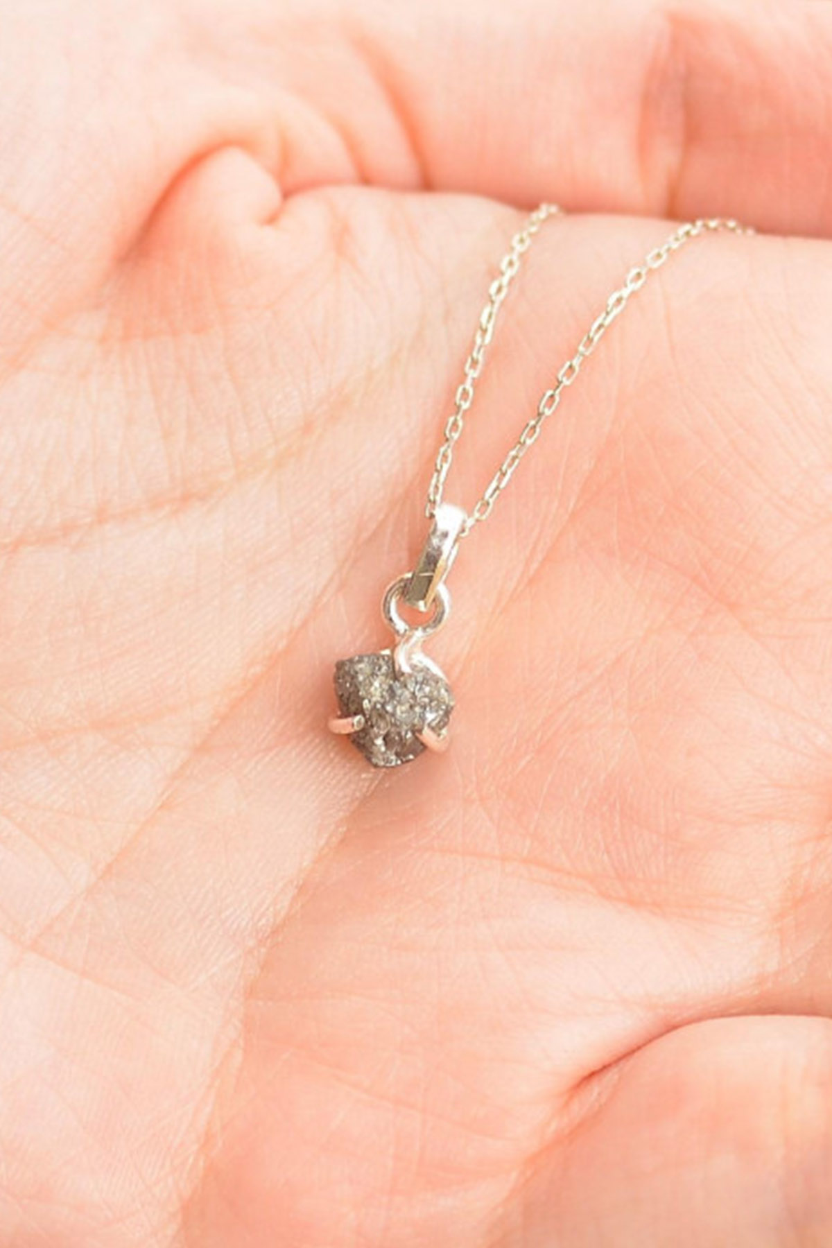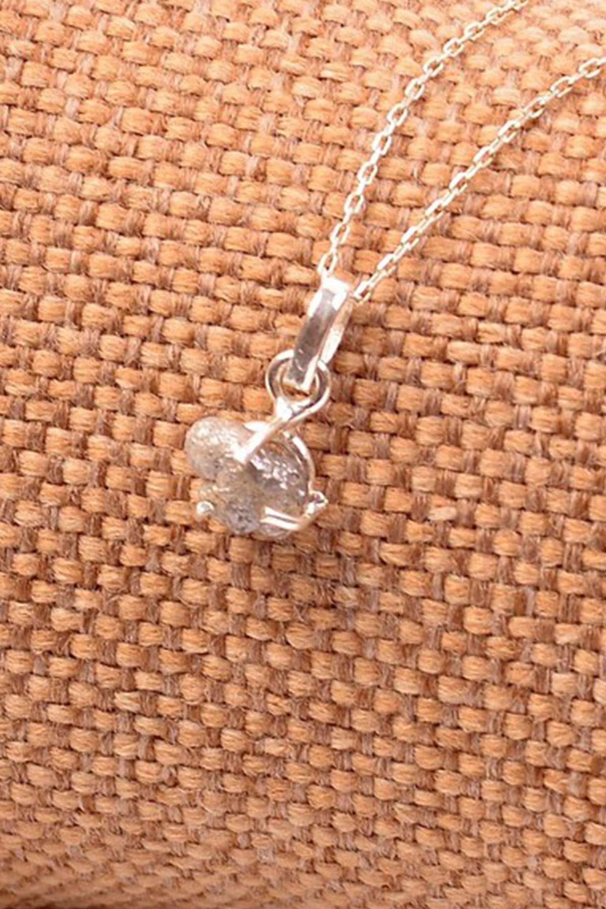 İşlenmemiş Ham Elmas Taşı Gümüş Çerçeveli Doğaltaş Kolye