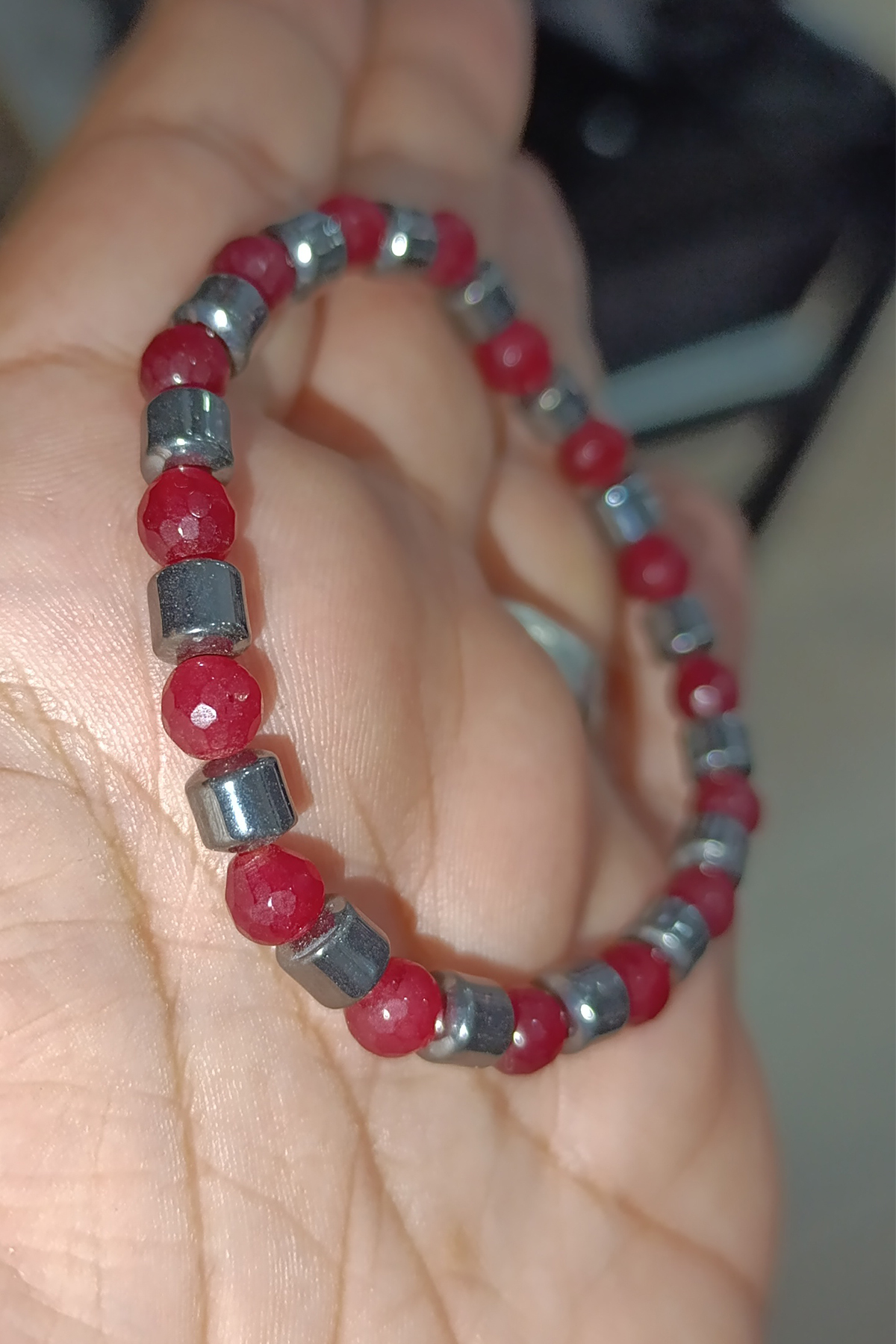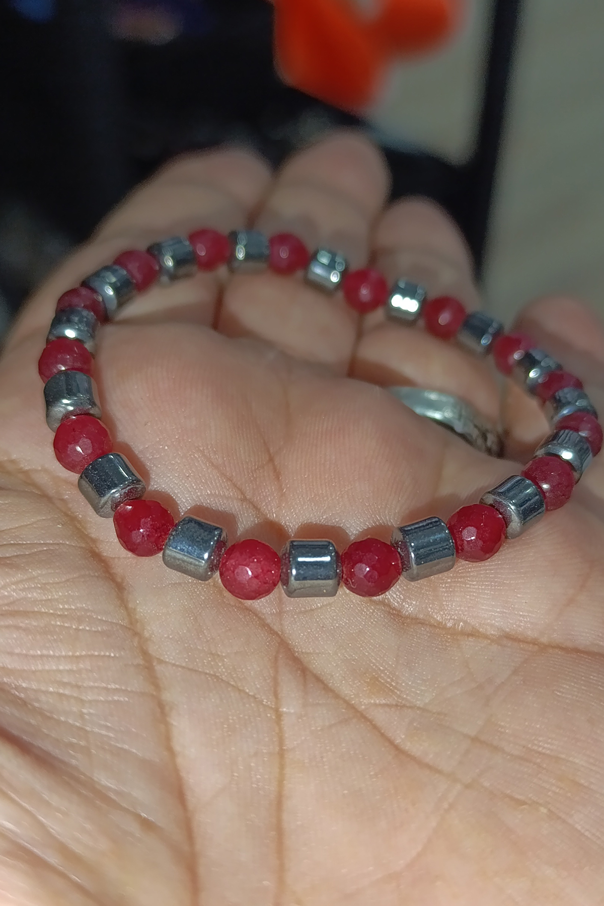 Kırımızı Akik 6 mm Faset Kesim Hematit Ara Taşlı Natural Doğaltaş Bileklik