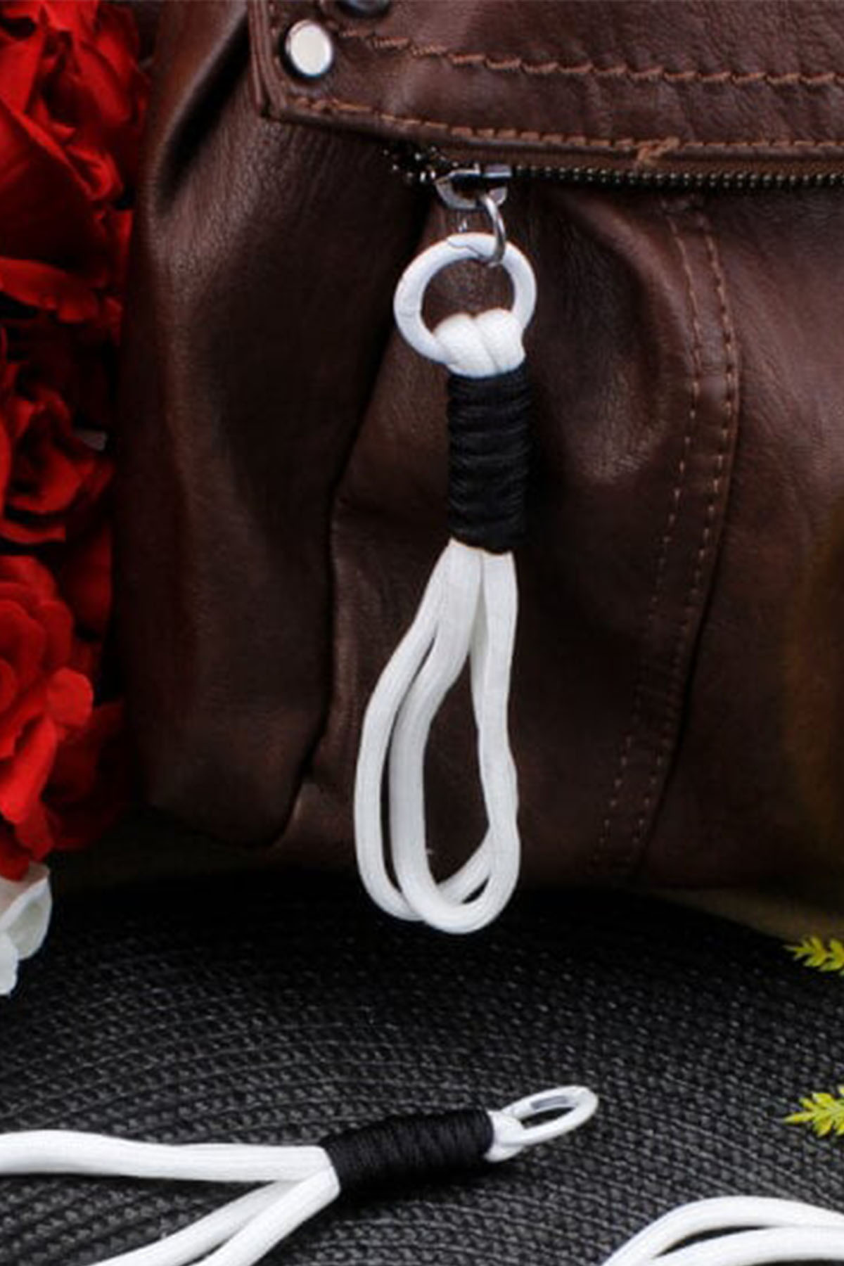 Sade ve zarif tasarımıyla çantalara modern bir dokunuş kazandırır. Parlak beyaz ip formu, siyah sargı detayıyla birleşerek dikkat çekici bir kontrast oluşturur. Dayanıklı malzemeden üretilmiş olup, çanta fermuarlarında, anahtarlıklarda veya dekoratif süslerde kolayca kullanılabilir. 15 cm uzunluğundaki kompakt yapısı sayesinde hem estetik hem pratik bir kullanım sunar. Beyaz renginin zarafeti, sade çantalarda bile modern bir şıklık yaratırken, siyah detay tasarıma dinamik bir karakter katar. Günlük kullanıma, hediye süslemelerine ve kişisel tasarımlara uygundur. Kaliteli dokusu sayesinde uzun süre formunu korur. Minimal tasarımıyla dikkat çeken bu charm, zarafet ve sadeliği sevenler için ideal bir seçimdir.