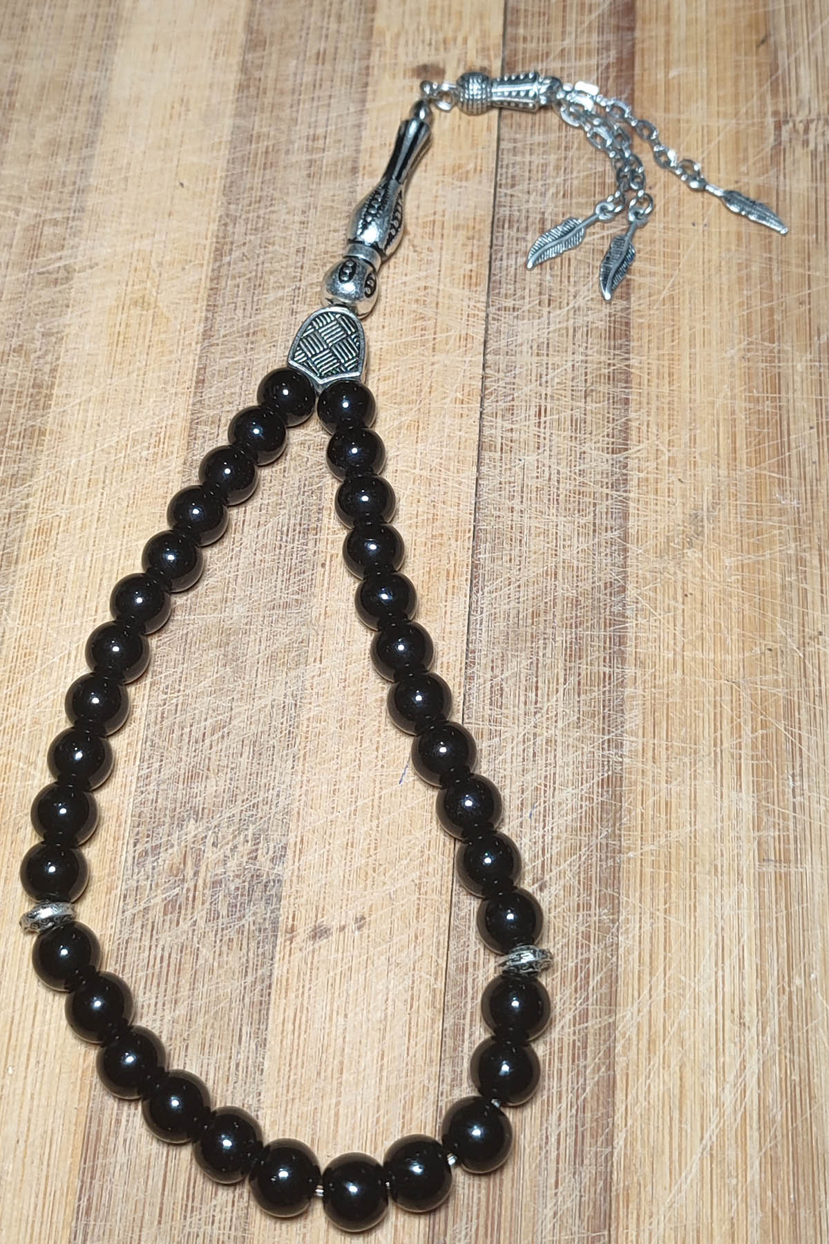 Oniks Taşı Küre Kesim Natural Tesbih 33 lü