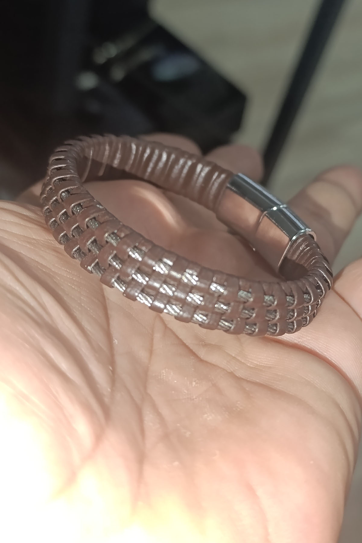 Orjinal Deri Örme Çelik Kahve Bileklik