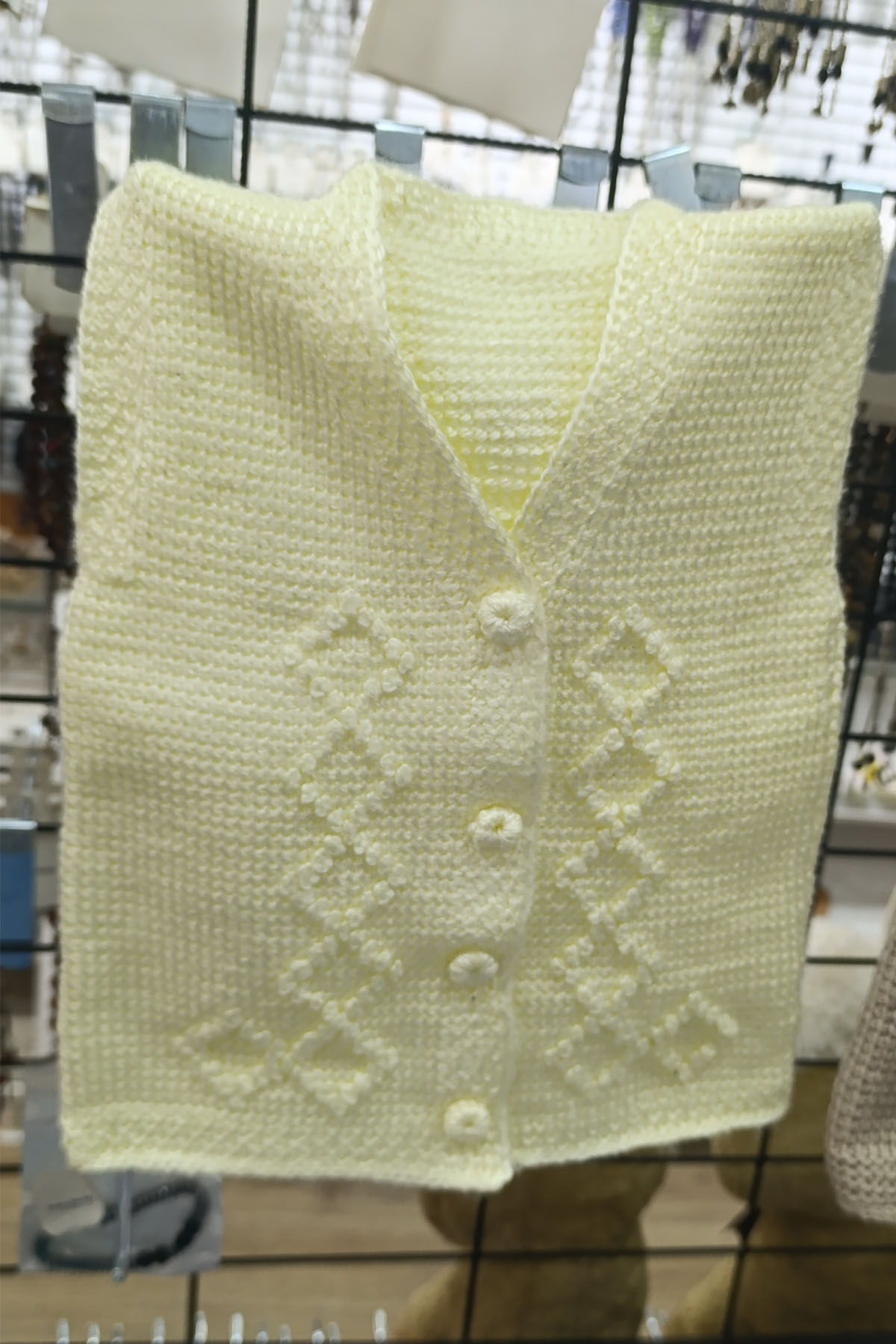 Tunus İşi El Emeği Örgü Sarı Bebek Yelek 2 Yaş